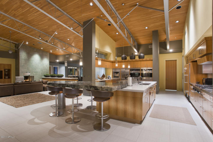 This contemporary showpiece is worthy of a center spread in Architectural Digest! Every inch of this sprawling estate is perfectly designed with exquisite taste. The industrial kitchen is more than magnificent, as is every other room in the home from the gorgeous dining room to the extravagant media room with a phenomenal wet bar. Each of the bedrooms has its own distinctive style and the dramatic design from the office to the great room, includes finishes that will take your breath away. The pristine grounds house the most exquisite pool and spa and fabulous mountain views! This zen-like property is full of elegance, glamour and pure serenity. Its offers resort quality with designer touches, yet has extraordinary warmth and charm!