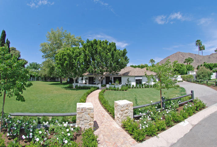 This lovely home was completely rebuilt in 2004. With gorgeous design elements & terrific living spaces-this house makes for fabulous entertaining. The kitchen/great room are the homes focal point with large in wall telescoping windows, huge granite island, top of the line appliances & backyard views. The living/dining room have unsurpassed views of Camelback Mountain. There is a full wet bar with icemaker, dishwasher & cooled wine room. Wonderul split floorplan with separate play room & en-suite guest rooms + a dramatic den with stunning woodwork. Custom cantera & marble grace the home’s many fireplaces & bathrooms. Serene grounds with pool/spa/water features/firepit, huge covered patios & an unbelievable 870 sf casita/pool house with it’s own kitchen, bath and laundry room!