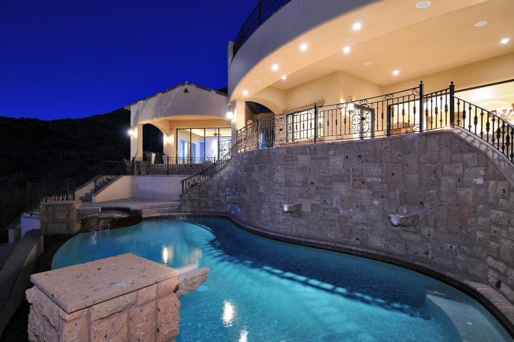 NEVER LIVED IN…. On The BEST view lot in Las Sendas.The true Diamond of the exclusive Diamond Point Community. It’s all about the VIEWS…Spectacular views from this luxurious estate. Nu Vista home builders have appointed this home with all the best amenities, including fully equipped guest home,7 Car Garage; one of which is an RV garage, Each bedroom has its own private bath, three levels of patio for entertaining, Theatre room, Top of the line gourmet kitchen, Incredible master suite with city light views from your bed. The pool and yard is one of kind. Many, Many more features. It’s a must see.