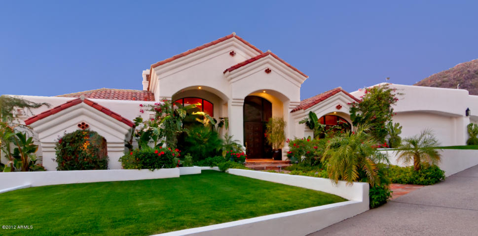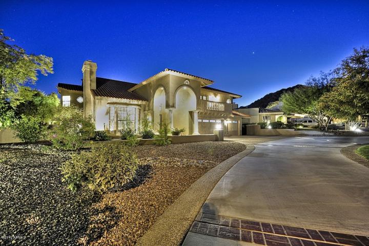 Spectacular city & mountain views from every room of this luxurious property. Home features fabulous interior courtyard w/cantera fireplace & fountain. Extensive West facing covered patios w/fireplace, firepit & bbq. 6 car garge w/gated motor court. Gourmet kitchen is equipped w/the finest of appliances, featuring Wolf, Sub Zero, & Miele, to complement the magnificent cabinetry, granite counters & 2 islands. Dream master suite w/private exit to back patio. Each of the remaining 4 bedrooms has its own private bath. Attached casita w/private entry can serve as office, guest suite or sewing room. Home theater room w/wet bar. Family room & theater room have glass wall opening to patio. Take in the sunset’s views from this spectacular pool & spa setting. One of a kind exclusive custom home. CALL FOR MORE INFO OR PRIVATE SHOWINGS 480.458.8007