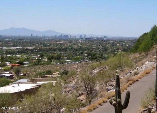One of the highest lots on the south side of Mummy Mountain, this hillside property features breathtaking views of downtown Phoenix, including a full profile of Camelback Mtn. The property is full of geologic accents, giving it a unique combination of on-site beauty with the superior view. Unlike the ‘house on a slope’ competition, it boasts a diverse landscape of rock ridges and low areas, ins and outs, large boulders and scree, but ample room for development. Secluded and private, neighbors to each side are practically invisible. Existing structure “floats” over the entryway to the front door, an innovative solution to the slope, and that existing foundation can be maintained to utilize this unique configuration. Build your custom masterpiece above the rest! CALL FOR MORE INFO OR PRIVATE SHOWINGS 480.458.8007