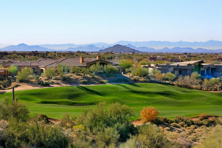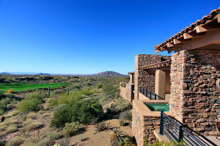 Stunning golf course, Mtn. & city light VIEWS from this beautiful 3 bedrm, 3 bathrm home in Desert Mountain. Perfectly situated on an elevated North/South facing cul-de-sac lot located on the 18th hole of the Renegade golf course. Upgrades include hardwood, flagstone & travertine flooring, plantation shutters, wood planked & coffered ceilings, custom cabinetry, & surround sound. Floorplan offers large open kitchen w/ granite countertops & family room w/ granite wet bar & gas fireplace. Master suite features tumbled travertine counters, shower & tub, his & hers walk-in closets & stacked stone gas fireplace. Back patio w/ BBQ area, heated spa, & gorgeous VIEWS! Membership not required (no fees) but currently offered at special discounted pricing if desired. CALL FOR MORE INFO OR PRIVATE SHOWINGS 480.458.8007
