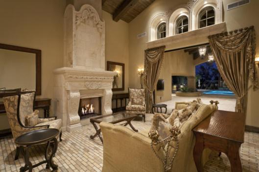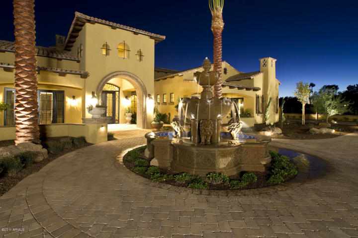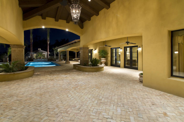 Property Remarks – Exquisite Mediterranean villa with unparalled architecture & detail on apprx. 1 acre. Light, bright flowing floor plan. Hand carved Canterra stone columns & enormous fireplaces in master, living and fam. rm. Formal entry and grand living room with incredible views of Camelback Mt and city lights. Large family rm with separate game room and wet bar. 6 bdrms plus ofice with bath. Expansive mstr bd & bath with separate closets and bar. All bdrms have private baths. Bdrm 2 is oversized and could be second mstr. 500 bottle wine room with handcrafted iron door. Rich cabinetry, Wolf/Sub Zero appliances. Abundant covered travertine patio, large grassy area with ext. fp and city light and mt. views. Fabulous negative edge heated pool and spa. Entertainer’s dream home!
