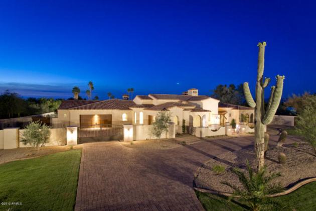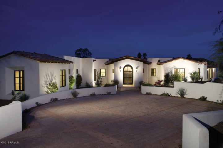 A NEW 2012 J.M. Wall Development estate home with finishes to die for!! This home is finished with custom carved limestone fireplaces, gated auto court, magnetic gated courtyard, custom ironwork, cantera fountain, alder wood doors and baseboards throughout, dual water heaters on recirculation pumps, clay roof tile, two private courtyards both with views of mummy mountain, game/theater room, attached casita, wet bar, butlers pantry with subzero wine cooler, large patios, wolf & subzero appliances, DuChateau’s walnut plank wood floors, true multi-zoned a/c system, toto toilets, dual asko dishwashers, built-in bbq with fridge, european hand crafted cabinetry, heated pool/spa, firepit, lots of grassy areas. Location you will love, on the base of mummy mountain and on a very private street.