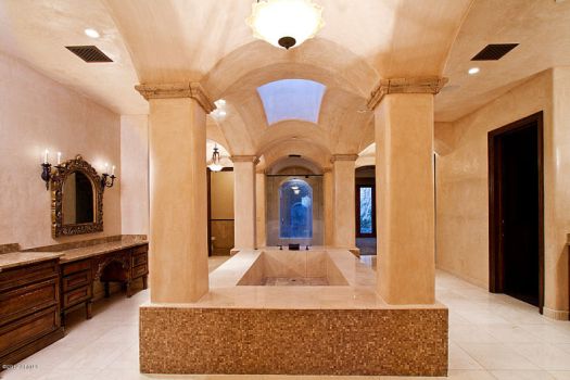 This amazing castle is located on 3+ acres situated on a hilltop at the end of a quiet P.V. cul de sac in a guard-gated community within Clearwater Hills. Relax in the master suite with the heavenly master bath w/reflecting pool, glass mosaic tiles, Venetian plastered groin-vault ceiling Excersice room with sauna and juliet view balconies. 2 guest houses &/or caretakers quarters. Super views of Camelback Mountain. Quality impossible to replicate at this price. This is understated elegance at its best.