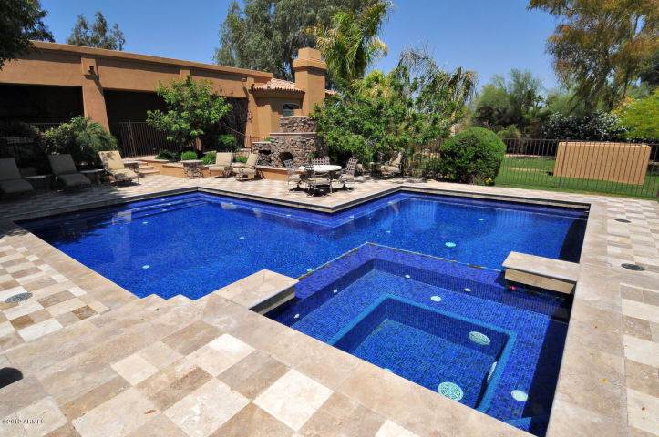 This Exquisite custom estate is on 2.2 acres in one of Paradise Valley’s best locations, Remodeled in 2005 by Lenzmeier Construction,Designed by Larry Lake and features incredible designer finishes,Gourmet kitchen w professional appliances,open to family room,Lanai doors to patio, 6 bedrooms- one as study also upstairs media room with bar,bath and view patio, Complete guest house w/kitchen living room-bedroom, garage,large spacious rooms,Impeccably landscaped lawns with beautiful trees,2011 tile pool/spa, circular drive custom iron gate into property,4 car garage and slab parking, a must see!