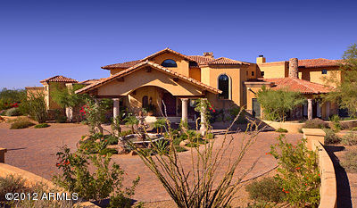 BEST DEAL FOR NEW CUSTOM GATED HOME, A 1.5 ACRE ESTATE SET AGAINST DRAMATIC MUMMY MOUNTAIN VIEWS. THIS ESTATE HOME OFFERS THE FINEST FINISHES INCLUDING IMPORTED BOTTOCHINO MARBLE FLOORING, LIMESTONE COLUMNS, EXQUISITE VENETIAN PLASTER AND HANDPAINTED TRIPLE CROWN MOLDING. TWO COURTYARDS, 6-CAR A/C GARAGE, GLASS-TILED NEO-CLASSIC POOL AND SPA, FULLY-CONTAINED 1100 SQ.FT. GUESTHOUSE INTEGRATED WITH MAIN HOME, METAL ROLL-SHUTTERS ON ALL ENTRIES TO THE HOME, CRESTRON TECHNOLOGY, SCHONBEK LIGHTING, AND SHERLE WAGNER FIXTURES. THE QUALITY IS UNBELIEVABLE! $600K CUSTOM FURNITURE PACKAGE IN PLACE AND AVAILABLE! EXQUISITE DETAIL, COMFORT, ELEGANCE & PRIVACY! GRAND LVIING!