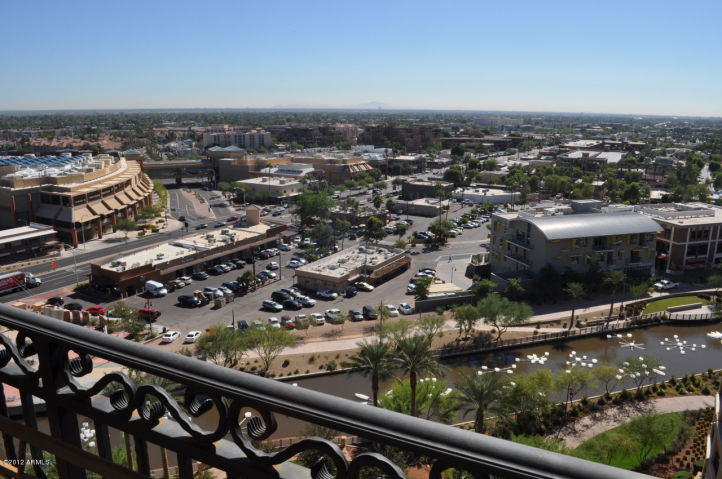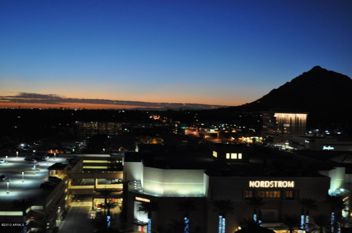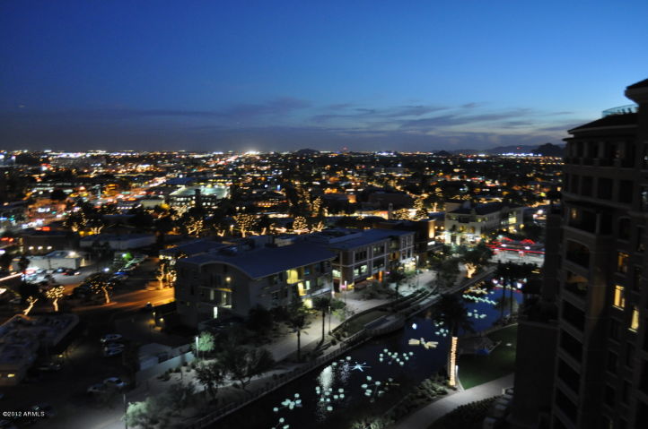 Possibly the most exquisitely finished penthouse in the entire metropolis, framed by compelling views! From a front row view of the canal scape, to expansive city lights & distant mountain horizons, it is the best of eye candy! Interior finishes are sumptuous, with rich stone walls, carved wainscoting, archways & coved ceilings, cobbled hardwood & stone floors. Supreme culinary environment, begins with a La Cornue range, Sub-zero, w/open dynamic to both the great room & sunny breakfast nook, with endless views and a generous patio lounge. The study is adorned with woven leather walls and built-in library cabinetry. Master bedroom fabric walls & ridiculously plush carpet, are an indulgence of luxurious comfort, w/private patio & Camelback Mtn views. Mtr bath & closet meet every expectation.