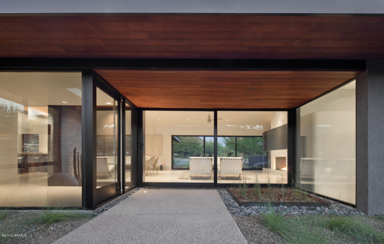 There are some homes that stand out to us here at Lavish Pad Boutique and this is one of them. You can’t help but stop the car when you come across this property located in the west area of Arcadia, Arizona along the Phoenix/Arcadia/Biltmore border. This area is surrounded by desert and city living with Camelback Mountain to the north, the Biltmore to the west, Scottsdale do the East, and the city of phoenix to the south. This area is surrounded by older well kept up homes (old phoenix homes), some custom brand new homes, and some lavish mansions on the mountain top. But in this immediate area the homes are much older where some have been remodeled and others torn down so you can easily see how a brand new contemporary home will stand out!