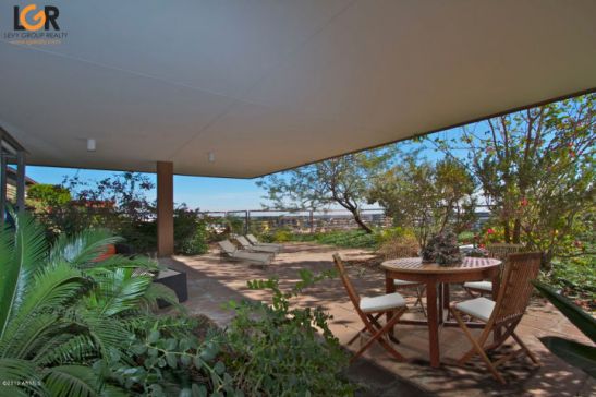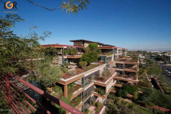 Peak inside this bad boy simply stunning Optima PENTHOUSE Condo that features a premium corner lot with breathtaking mountain views & southern exposure. With 3,330+ sq ft. of indoor living space + 4 patios with over 600 additional sq ft to enjoy! Large master suite offers sitting room/office and large walk-in closet. Spacious bathrooms with jetted tubs & separate showers. New paint, new carpet and refinished 24×24 travertine flooring (just completed). Great room features amazing views from its wall of windows and boasts a sleek two-way gas fireplace in study area. Automated shades throughout. 3 secured garage spaces. Community amenities include: 24k sqft fitness center, indoor & outdoors heated pools/spas, putting green, enclosed dog park, concierge, restaurants, salon, dry cleaners, lush landscape w/water features.
