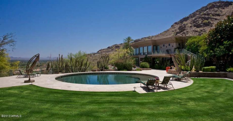 LUXURY ABSOLUTE AUCTION – Selling with No Reserve – Feb 28, 2013 at 2PM. 40 Acres available with Paradise Peak Estate that offers the ultimate in Sonoran Desert living in Paradise Valley with gardens designed by acclaimed landscape architect Thomas D. Church. This signature luxury contemporary home rests on Mummy Mountain & encompasses 12, 860 sq ft, 7 bedrooms, 8 baths, 4 1/2 baths & 6-car garage. Very Rare Large Flat Lot with 300 ft deep home site. Maintained grounds feature large circular pool and spa, putting greens, outside kitchen area and water features. The 40 Acre property has been platted and recorded for 6 lots. This is YOUR OPPORTUNITY TO OWN a Rare Private Estate.