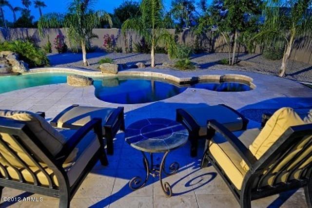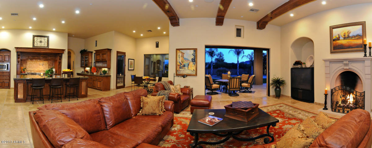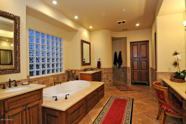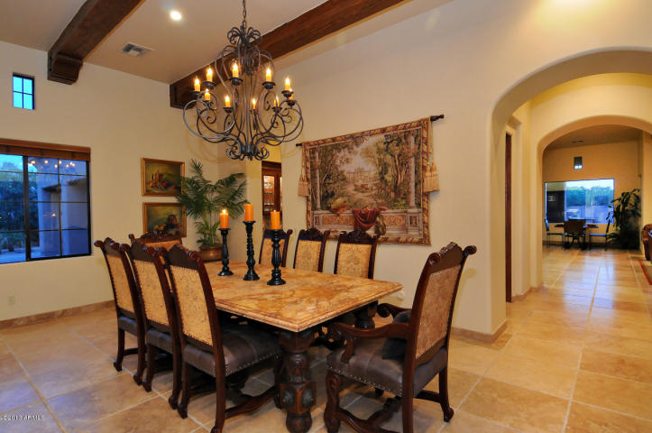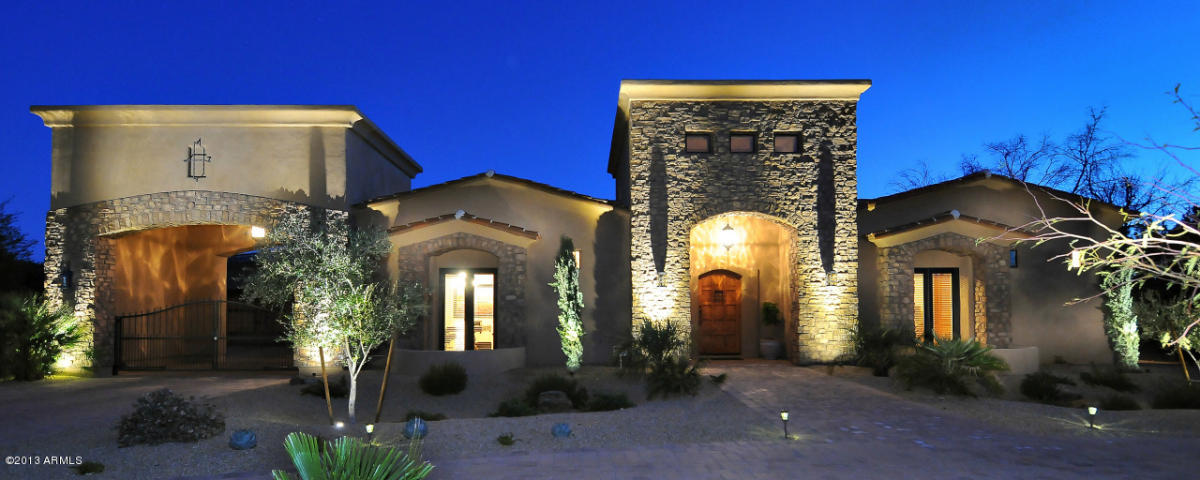 Luxury Tuscan Villa. Developer’s own home constructed by the same artisans who built $5m+ homes in Paradise Valley. Features include a 20′ Entry, Central courtyard, 4 Fireplaces, Private attached Guest House with fireplace, 24”Travertine flooring, 5-Bedrooms en-suite, 5.5 baths, 4-car garage, Gated porte-cochere, Indoor/Outdoor theatre room, CHEFS KITCHEN with 60”Wolf range, dual dishwashers, 750-bottle Wine Cellar, Aroma bubbler/jetted spa tub, Granite Slab & Travertine Countertops throughout, Network wiring, Abundant French doors and glass pocket doors for the best in indoor/outdoor living. Refined luxury at its best.