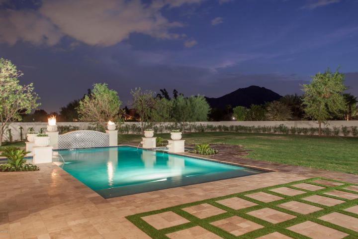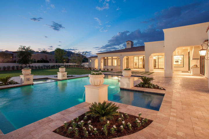 Now to this property here you have a brand new 2013 masterpiece, one of the last opportunities to own a new home in Judson Estates. All hand made European cabinetry throughout with the most unique and exciting finishes you will find, nothing was overlooked in this home. A wide open and flexible floor plan. Impressive large wood beams and chandeliers to amaze you. Home includes 5 bedrooms, study, game room, butlers pantry, wet bar, 3’frg, 3’frz, dual asko dishwashers, subzero wine unit, multi-zoned a/c system, dual water heaters, heated pool and spa, gated auto court, two private courtyards, custom closets, covered built in bbq, wood floors throughout, limestone fireplaces. The grounds are landscaped lush and green with sprawling grass and views of Camelback Mountain. A very private lot guard gated for the ultimate security.