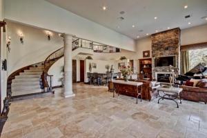 Curved staircase leading upstairs to an entertainment loft of approx. 1084 s.f. with theater room and