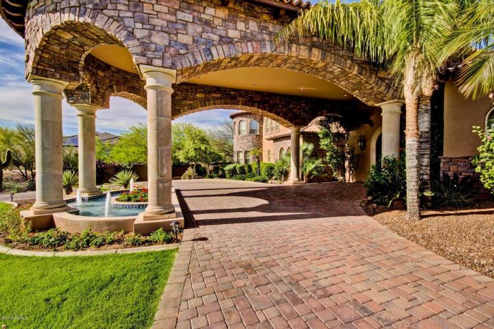 A circular driveway, Cantera Stone Columns, spectacular water fountain.