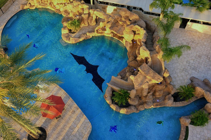 Welcome to the epitome of opulence, glistening like the Bat-Signal in the night sky. This unparalleled estate dazzles with more features than Bruce Wayne’s Batcave! At its heart, a million-dollar resort-style pool beckons, complete with a lazy river, two splash pads, and a hidden grotto—yes, you heard it right, a hidden grotto! 🌊🦇 Dupont Magazine even ranked this aquatic wonder among the Top 10 Pools of 2014!