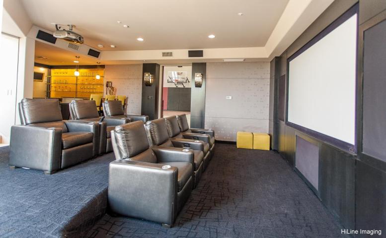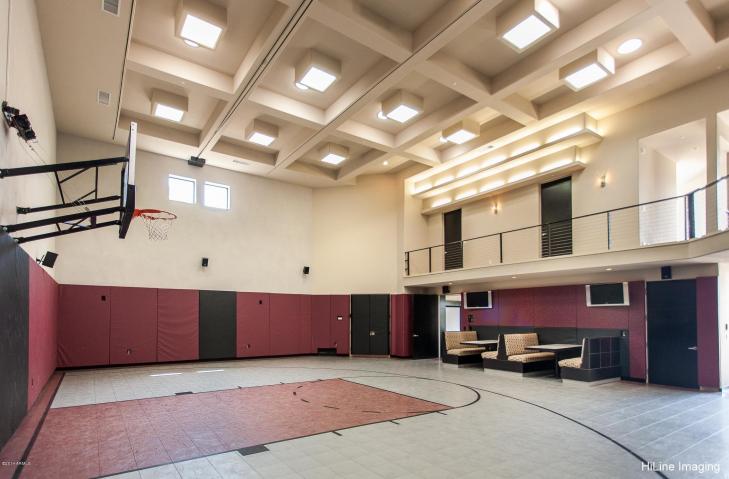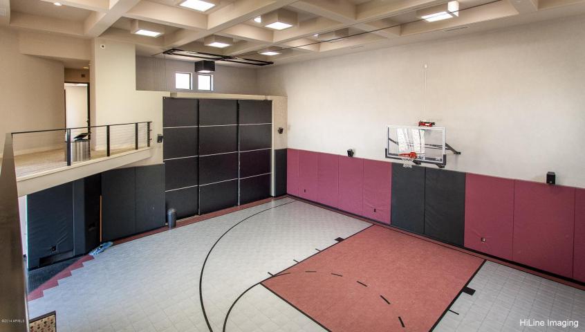 An entertaining delight! Sports enthusiasts will love the indoor basketball court with retractable batting cage, and restaurant style sideline booths with adjoining theatre room, stylish bar and theatre recliners perfect to watch game tape or the latest blockbuster.