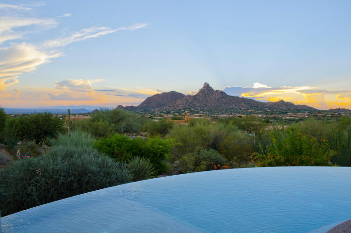 Wonderful Pinnacle Peak & Troon Mountain. Commanding City Light and Pinnacle Peak Views from this contemporary estate in guard gated Windy Walk at Troon Village.