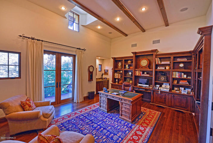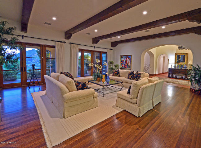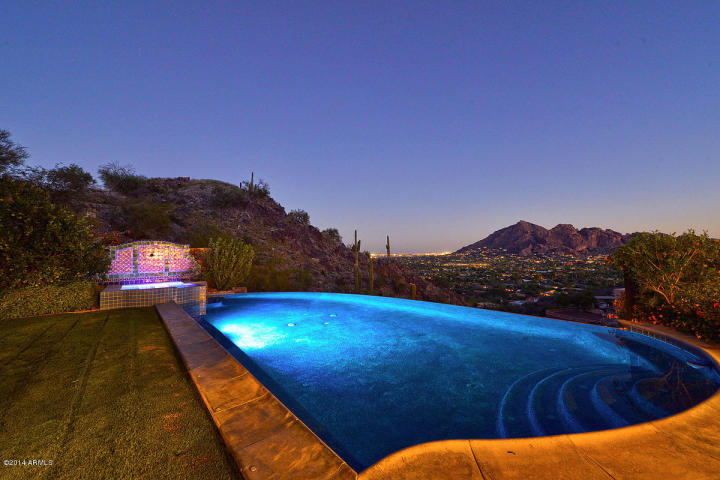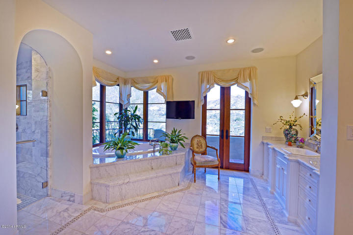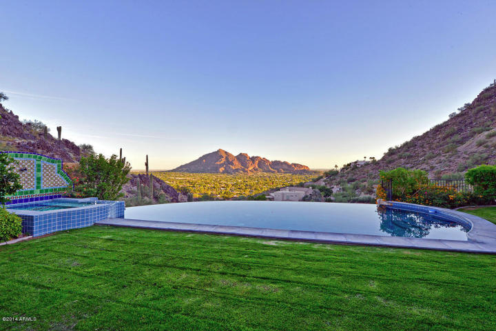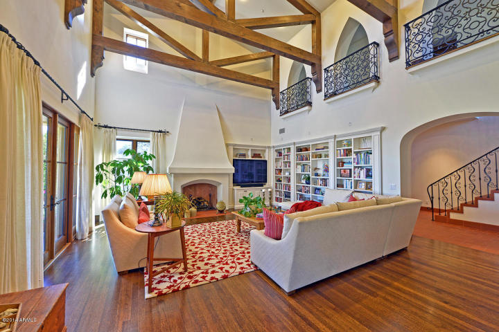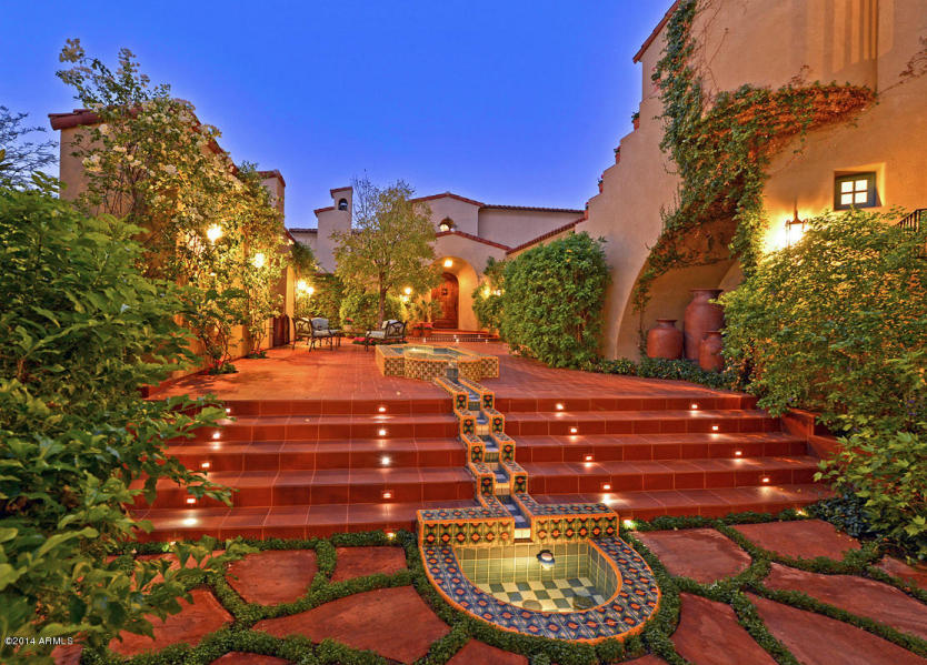 Many say that during the 1920’s was a time when American architecture reached a high point. Not only was this design inspired it also reflects the style of the Spanish Colonial Revival of the 1920’s but instead of being a home built in the 20’s it was built in 2011 with all the modern amenities of today. Two years were spent in the design and almost three years in the construction and finishing work. As you walk through this lavish estate you can see the labor of love that was put into the property. They say this home is for those who want to live in the style of Spain or ”Old” California because it features courtyards, patios, gardens, fireplaces, lovely entertaining venues and rich organic luxury that is typically found in those locations and property types. The rooms are all very generous in size for family and guests. The main living is done on a single floor with an elevator to the guest bedrooms. Just magic. The most impressive feature to me is the negative edge pool overlooking the Valley of the Sun!