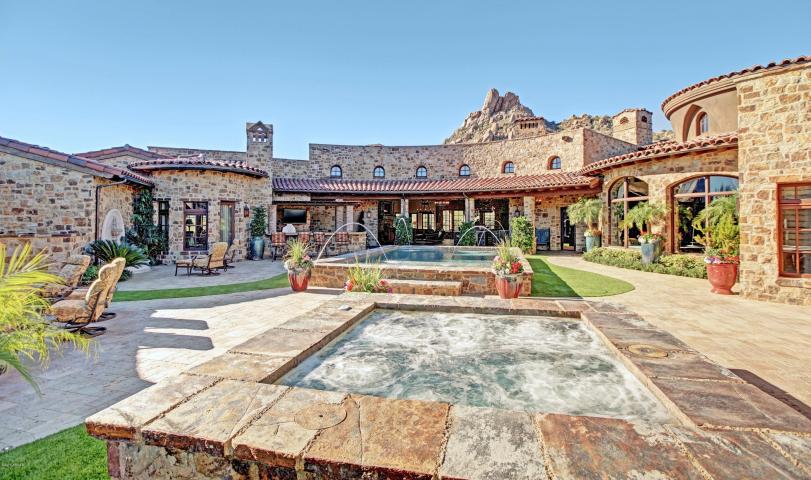 Stunning world class home located immediately under Pinnacle Peak is simply unforgettable! Built of block & stone construction, no detail was overlooked or cost spared…