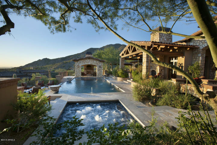 In the words of the agent – Immediately upon passing through the entry gate you know you’re in a very special place. Surrounded with lush landscaping, charming courtyards and fabulous views, this Ranch Hacienda estate exudes quality, sophistication and inviting grandeur. The abundance of stonework both inside and out is complimented by extraordinary beams and woodwork, imported windows, impressive light fixtures, fine custom cabinetry and state of the art electronics. This home must be seen to be fully appreciated.