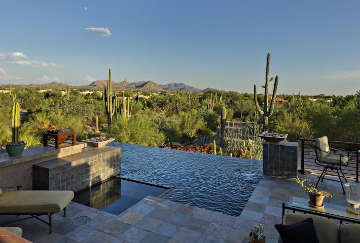 Located in the guard gated community of Sincuidados and perched on a 1.36-acre hillside lot with panoramic views of Desert Mountains, Pinnacle Peak & city lights. Each detail will capture your eye and the home is absolutely ideal for entertaining. The Scoop: Featuring 4 bedrooms, 5.5 bathrooms, a library, gigantic walk in closet, state of the art home theater, crazy detail above the vaulted ceilings, wine room, huge safe (perfect for an Oscar, championship ring, Grammy, or even a trophy), Gym off the master, and one of the sexiest negative edge pools and spas we have seen in a long time and guess what clothing is optional! A perfect fit for a professionally athlete, celebrity, or anyone who seeks a true Scottsdale bachelor pad.
