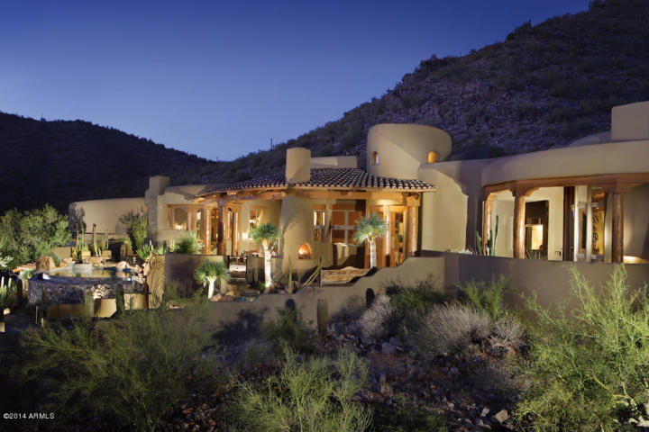 Beautifully nestled into the hillside, this 14 acre estate offers the best of Arizona; ultimate privacy, cozy outdoor entertaining spaces, wonderful mountain views and twinkling city lights.