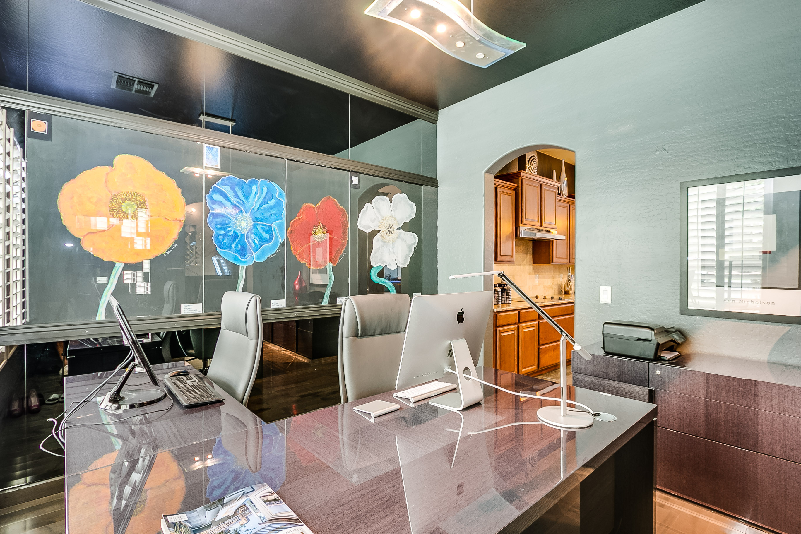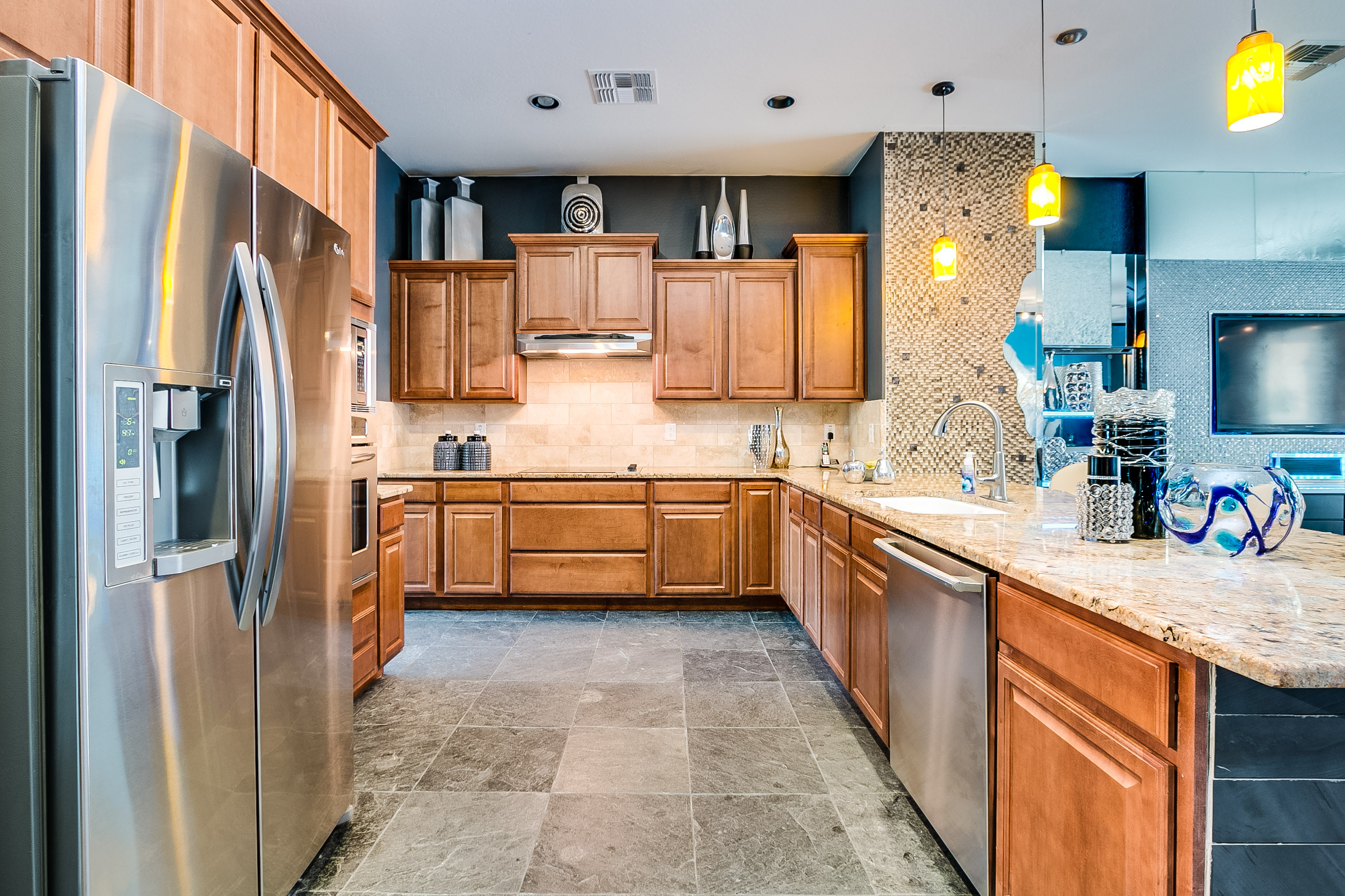 The sleek, sophisticated kitchen has been updated and opens to the living room giving it today’s hottest trend, an open floor. The Custom wrought iron front door is the perfect red bow to complete this masterpiece. You would think it’s the perfect Bachelor or Bachelorette Pad but one of the bedrooms and bathrooms was designed by the owner’s daughter. It’s a must see and I know Anastasia Steel would approve.