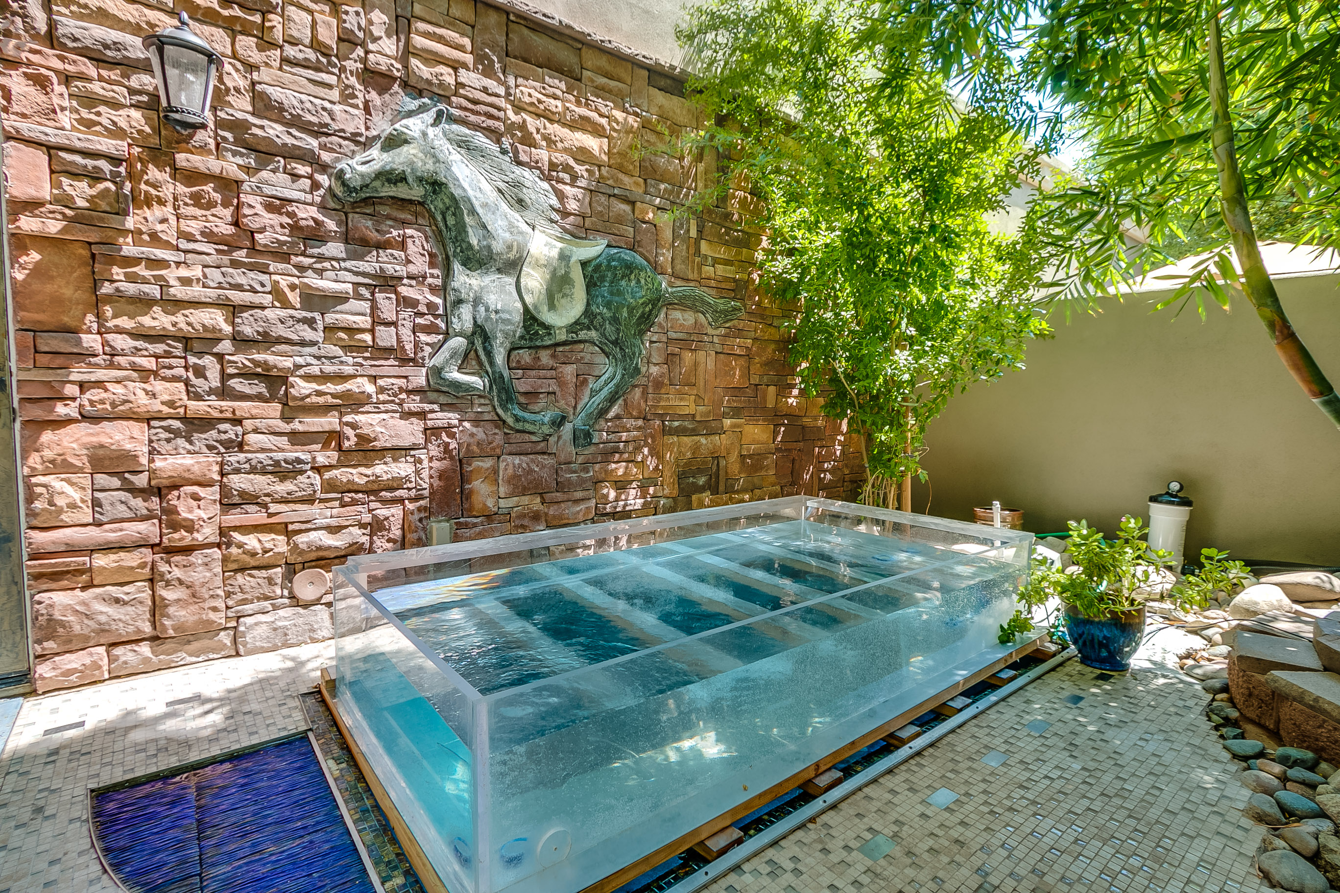 The Outdoor living space includes customized back porch with meditation pool, exterior shower, and the perfect space for small gatherings, yoga sessions, or relaxation. Above the 2 Car garage is a 1 bedroom/1 bathroom guest house with easy access & exit.