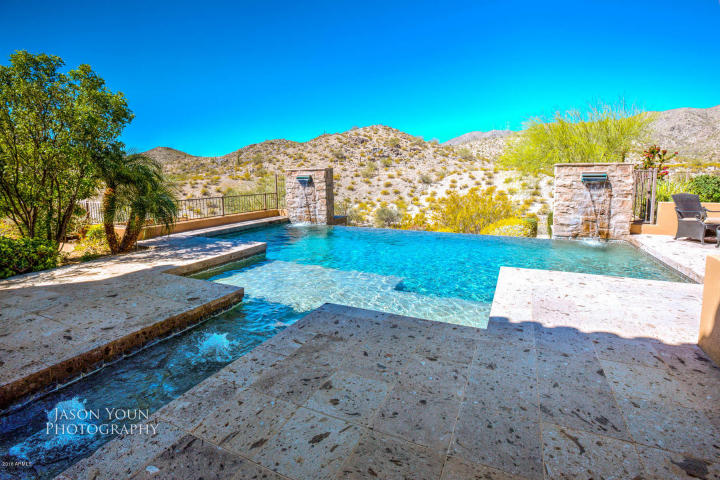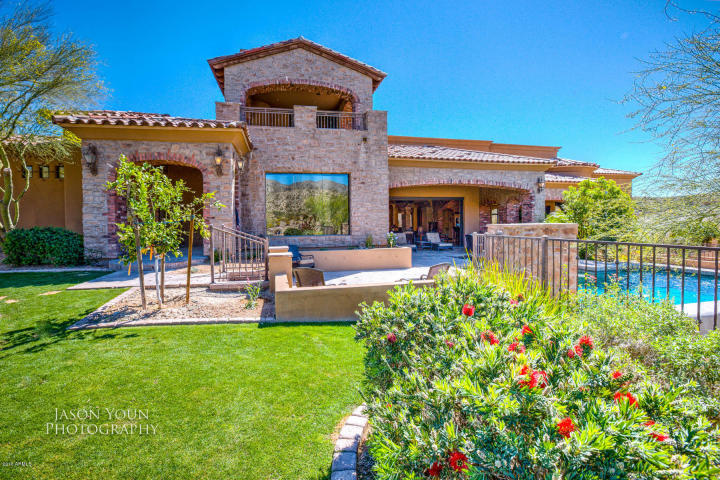 Located at 13808 S CANYON DR, Phoenix, AZ 85048 in MOUNTAIN PARK RANCH in Ahwatukee, Arizona. The estate boosts 5 bedrooms, 6 bathrooms, 9,113 sf, 3 car garage, gourmet kitchen, wine cellar, and almost an acre of desert bliss.