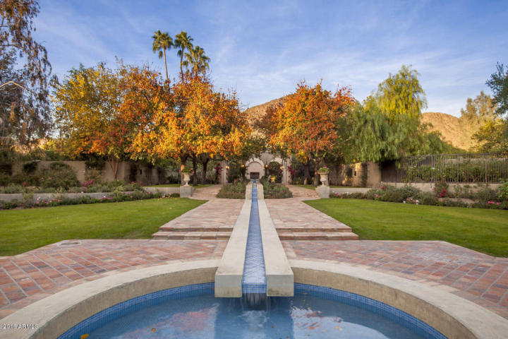 Taliesin trained and renowned architect, George Christensen is responsible for the design of this timeless home. On 5 acres, this estate is comprised of 4 separate structures including the 12,000 sf main house, a 3,500 sf guest house, a 1,900 sf office and a 1,500 sf gym and caretaker cottage. The main house has 6 bedroom suites 7.5 baths. Finishes like hand applied plaster walls, wide-plank white oak wood flooring, reclaimed beams, Hopes steel windows and doors, and multiple fireplaces set the stage for comfortable elegance and easy living. The open kitchen includes La Cornue and Viking appliances; creamy marble countertops, and the finest custom cabinetry. A formal living room and dining room create perfect settings for entertaining, while the very large family room is adjacent to the kitchen and breakfast room and opens via French doors to the beamed and covered patio and the expansive gardens beyond. The backyard is a very private place to enjoy the pool, fountains, lush landscaping, and outdoor kitchen. The guest house includes 3 en-suite bedrooms, a lovely great room, kitchen, patio, lap pool, and garage. The office was designed for both work and play. The caretaker cottage creates a very comfortable space for live-on property assistants. While exercising in the very large gym, you will enjoy spectacular views of Camelback Mountain. The 2 acres of citrus orchards are the last remaining irrigated orchards in Arcadia.