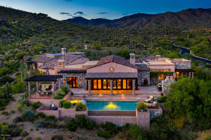 Situated on 2.2 acres in the premier Saguaro Forest Village in Desert Mountain. This lavish estate (41324 N 95TH STREET) Scottsdale features 5 bedrooms and 5.5 bathrooms, 7,390 sf, with a 4 car garage + parking for more, and Separate 2 Bedroom Guest house.