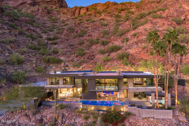 An important piece of art. Extraordinary architectural masterpiece, perfectly positioned high on Camelback Mountain, with awe-inspiring views, and gallery walls for displaying art. This amazing home will take your breath away and presents an incredible and rare opportunity for the fortunate buyer. Designed by world renowned architect Michael Johnson, and dramatically positioned on Camelback Mountain, the home masterfully reveals prime views from each interior space, including the glass sided elevator. For those who appreciate fine design and unmatched views, you will have found your new home.
