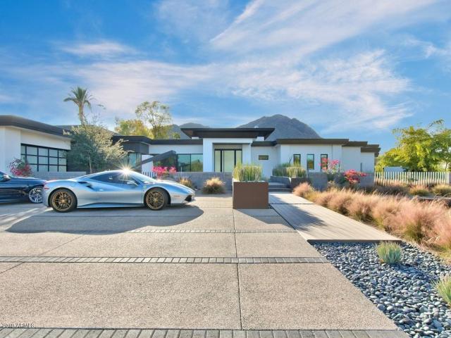 Selling for $8,500,000: INCREDIBLE GORGEOUS HOME WITH IMPECABLE CAMELBACK MTN AND PRAYING MONK VIEWS! 4 BED, 4 FULL BATH AND 2 POWDER ROOMS IN THE MAIN HOUSE ALONG WITH A 2 BED, 2 BATH GUEST HOUSE. HIGH-END CONTEMPORARY FINISHINGS THROUGHOUT THE HOME. LARGE GREAT ROOM WITH BUILT-IN ELECTRIC FIREPLACE AND POCKET DOORS THAT OPEN UP ALL THE WAY TO THE PATIO AREA. AN SEPARATE OFFICE, WORKOUT ROOM, THEATER ROOM AND BONUS AREA. GUEST HOUSE HAS ITS OWN LIVING AND KITCHEN AREAS TOO. AN ENTERTAINERS PARADISE IN THE BACKYARD WITH PRIVATE POOL, SPA, GAZEBO, BUILT-IN BBQ, SEATING AREA, FIRETABLE. HOME IS SURROUNDED BY GORGEOUS LUSH GRASS AND DESERT LANDSCAPING. THIS ESTATE IS FIRST CLASS ALL THE WAY! Listing Agent – Scott Grigg Realty Executives.