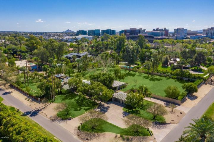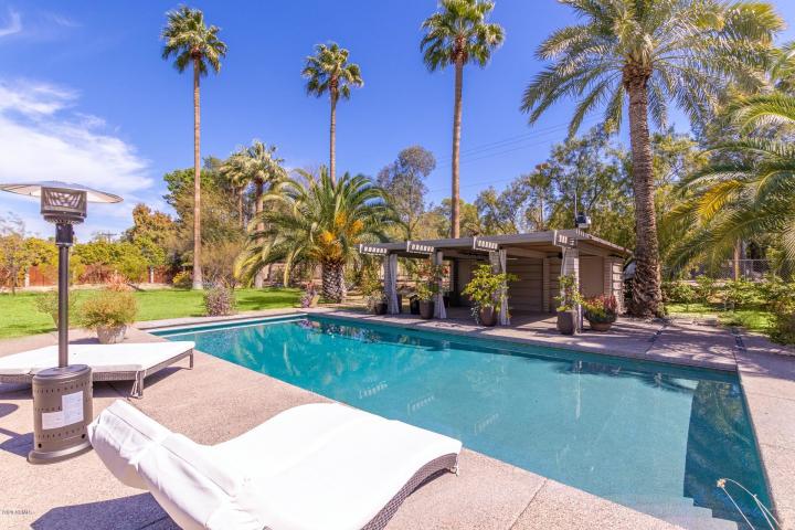 Absolutely incredible, one of a kind mid-century ranch style home by architect Paul Christian Yeager. 5 bed/5.5 bath with tasteful finishes and timeless charm from wall to wall. Gorgeous wood floors, walls of windows, distinctive stone Fireplaces and wall features, cathedral ceilings with exposed beams and more. Gourmet kitchen with gas cooking and ss appliances. Fireplaces in both the living and family rooms as well as the master bedroom and patio. Exquisite spa inspired master en-suite. Two Room guest quarters. Over two acres of Park-Like property with gorgeous views, a sprawling patio and a sparkling private pool. Irrigated lawn with mature landscaping. All conveniently located in the Camelback/Biltmore Corridor close to World Class shopping and restaurants, near the 51!. A Rare Gem.