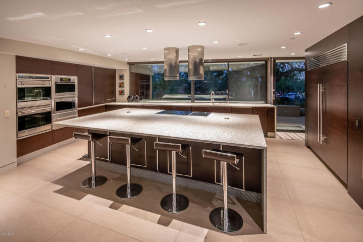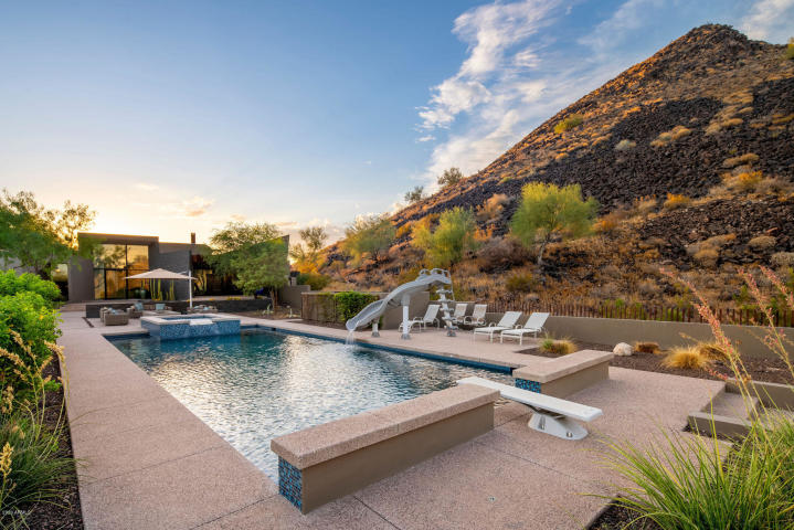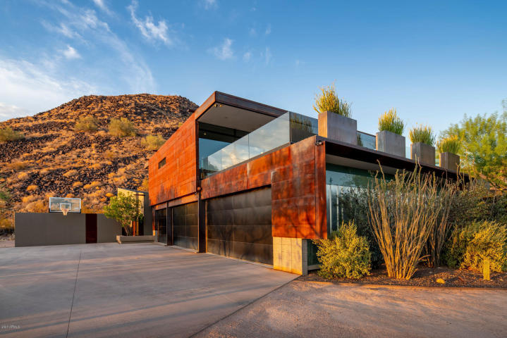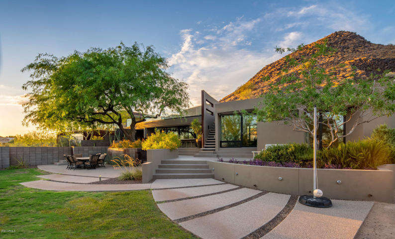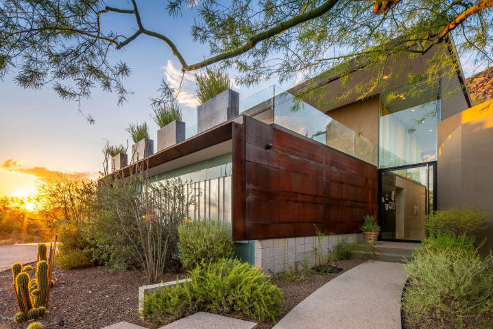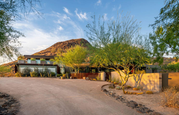 Listing agent Scott A Jarson & Arlee Reach with AZArchitecture/Jarson & Jarson hold this masterpiece of a listing… With a complete 2009 rebuild of this home designed by Riccardo Cattapan from CMDA Design Bureau, this Desert Contemporary design captures the site and the imagination! Nestled on a gentle 5 acre view lot, this home is surrounded by unspoiled natural desert and a unique volcanic boulder field in northeast Scottsdale. The designer is known for his expressive, yet restrained homes and this one is no different: luxurious textures and playful finishes bring joy to every space; natural steel and custom block details connect to our desert with a timeless palette of materials. The generous interiors offer room for all and an upper view bonus room is complete with walk-out deck of a direct connection to stunning lists, views, and Arizona sunsets!
