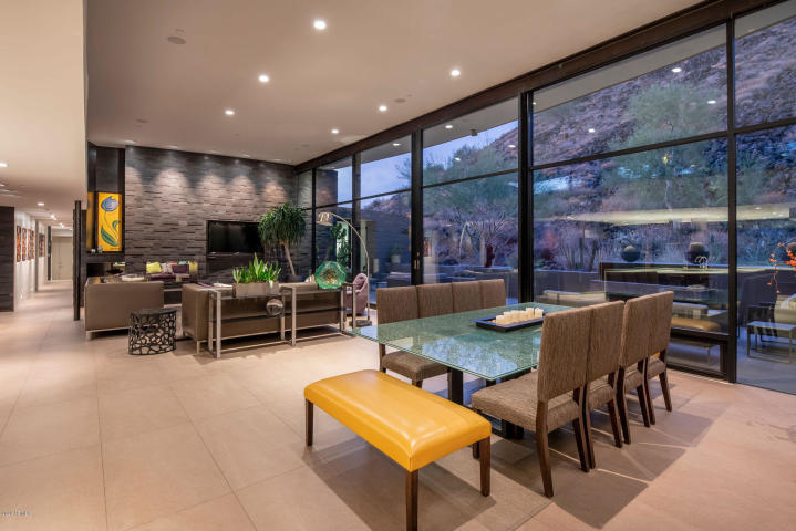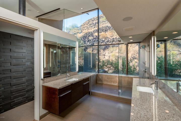 Inside you’ll find large public spaces perfect for entertaining or relaxing with friends and family. There is a large private master suite, complete with adjacent exercise room. The split floorpan allows for a private guest suite and seven generous bedrooms all with en-suite baths. The kitchen is a cook’s paradise with abundant workspace, natural light, and large walk-in pantry. Car lovers will delight in the oversized 5-car garage with height and storage. A modern, contemporary compound in a private estate setting, this home offers a Shea-Corridor location that leaves you well connected to all the Valley has to offer. For the active: there’s no end to the easy access to nearby hiking and trails.