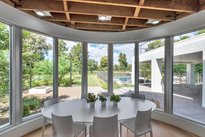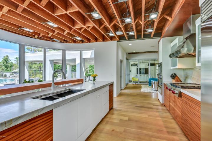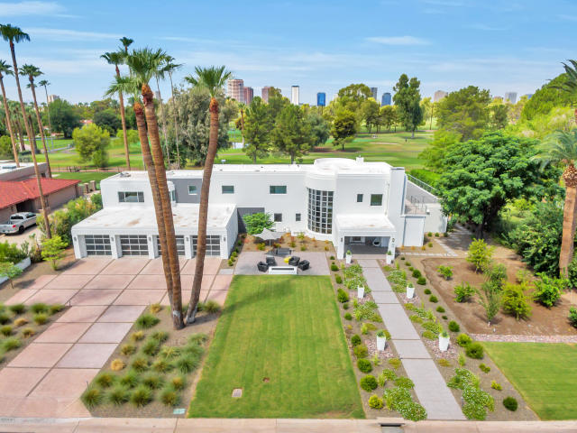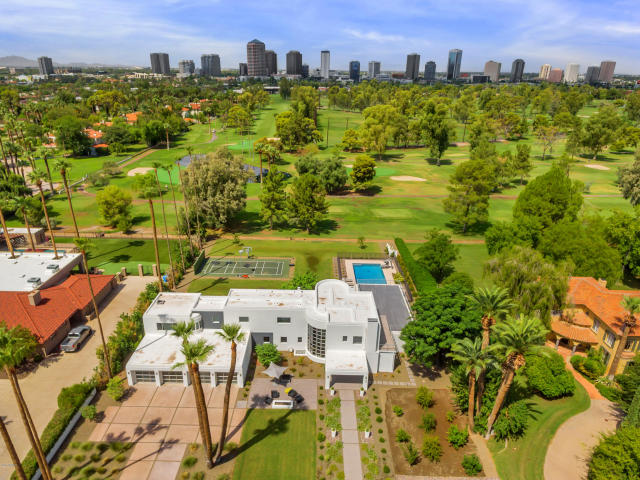 The Phoenix, Arizona home is certainly fit for a prominent politician or golf fanatic, with its prime location, stunning views overlooking the 3rd hole of the Phoenix Country Club (where the PGA Championship Tour is played), and large rooftop balcony for entertaining. The house was originally built in 1939, so it has a lot of historic charm, though has been elegantly upgraded using a mix of mid-century and modern contemporary finishes… Country club manor homes for sale