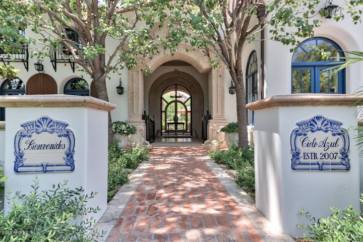 Public Remarks: This fabulous gated 25,000 sq ft. estate built in 2013 has views of Camelback Mountain overlooking a beautiful terraced cascading pool + grounds. The residence has exquisite mahogany ceilings and cabinetry, 6 automated pocket doors to the outside, a 2 story high living rm, 2 bedrm master suite w sitting rm 2 master baths + 2 closets. There is a gourmet kitchen w 2 large center islands and marble floors opening to a 1,750 sq ft family rm, an extraordinary two-story library, a 12 seat theatre, wine rm, a lounge bar, 2 offices, an exercise rm with glass steam rm + sauna + an attached guest home.The main rooms: kitchen, master suites, office and library are on the main floor. This home was built to commercial standards. There is also a 25 person elevator, add’l elevator + shooting range…
