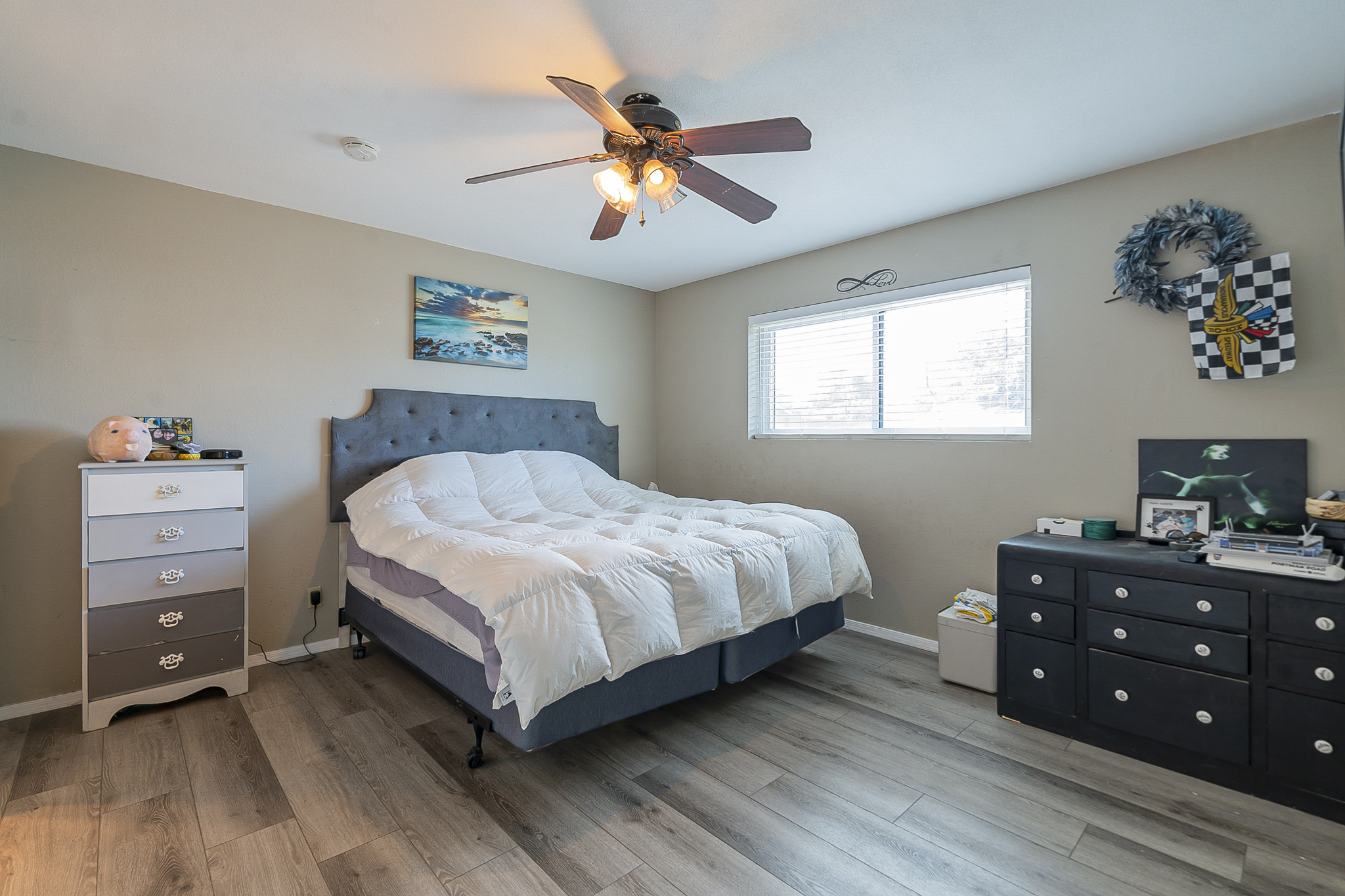 Complete kitchen makeover with all new shaker cabinets, granite counter tops, and all new Samsung stainless steel appliances. Large living room and dining room with ceiling fans. All new flooring, windows, and sliding glass door. Oversized backyard has a 12′ RV Gate, 12 X 20 storage shed and plenty of space to store your toys. Electrical panel replaced. NO HOA. Detached outdoor laundry room with storage space. Do not wait!!! Come see this house for yourself.