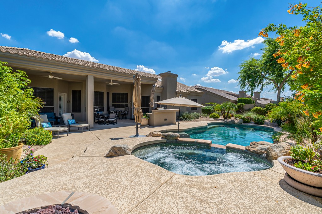La vida al aire libre en expansión es el paraíso de cualquier artista que se completa con una espectacular piscina con una fuente de agua y una combinación de spa, brasero, barbacoa empotrada y hermosas vistas de las montañas McDowell. Casa de espaldas al paisaje desértico y lavado para mayor privacidad. Esta casa es el epítome de la vida refinada y está lista para mudarse para su nuevo propietario.