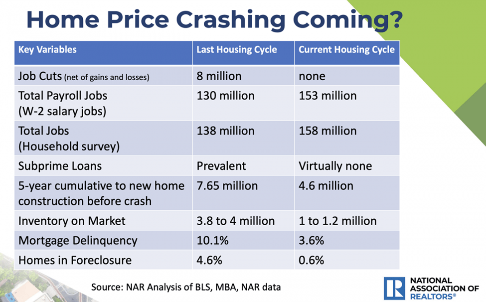 “It’s a valid question,” Lawrence Yun, chief economist for the National Association of REALTORS®, said Tuesday at NAR’s Real Estate Forecast Summit. “People are remembering the crushing and painful foreclosure crisis. So, it has become a key question: Will home prices crash after the strong run-up in prices across the country over recent years?”