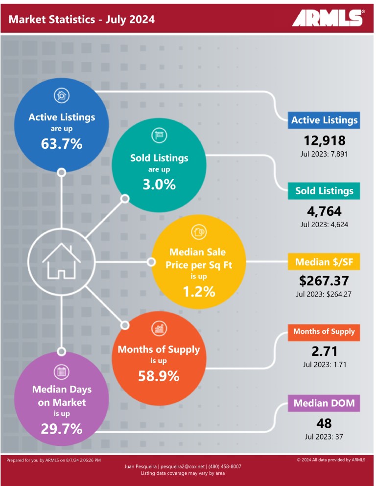 Below is a quick market snapshot of July housing numbers for the Phoenix Metro area. Stay tuned for our upcoming post to get the latest updates and in-depth analysis.