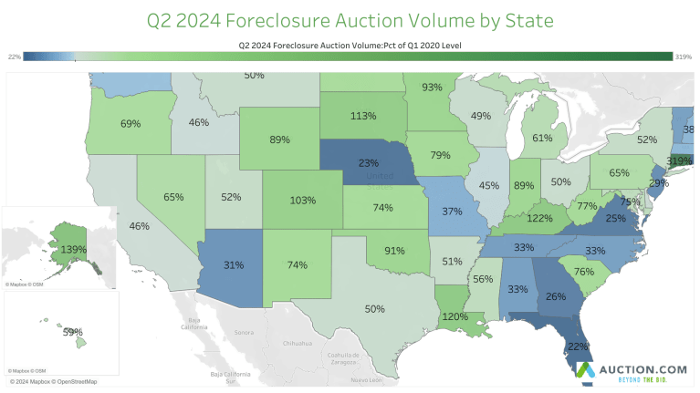 - For foreclosure auctions, the spread jumped from 3% in April and May to 6% in June, the highest in 16 months.