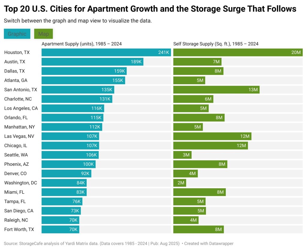 | City | Apartment Growth | Storage Growth | Notable Trend |